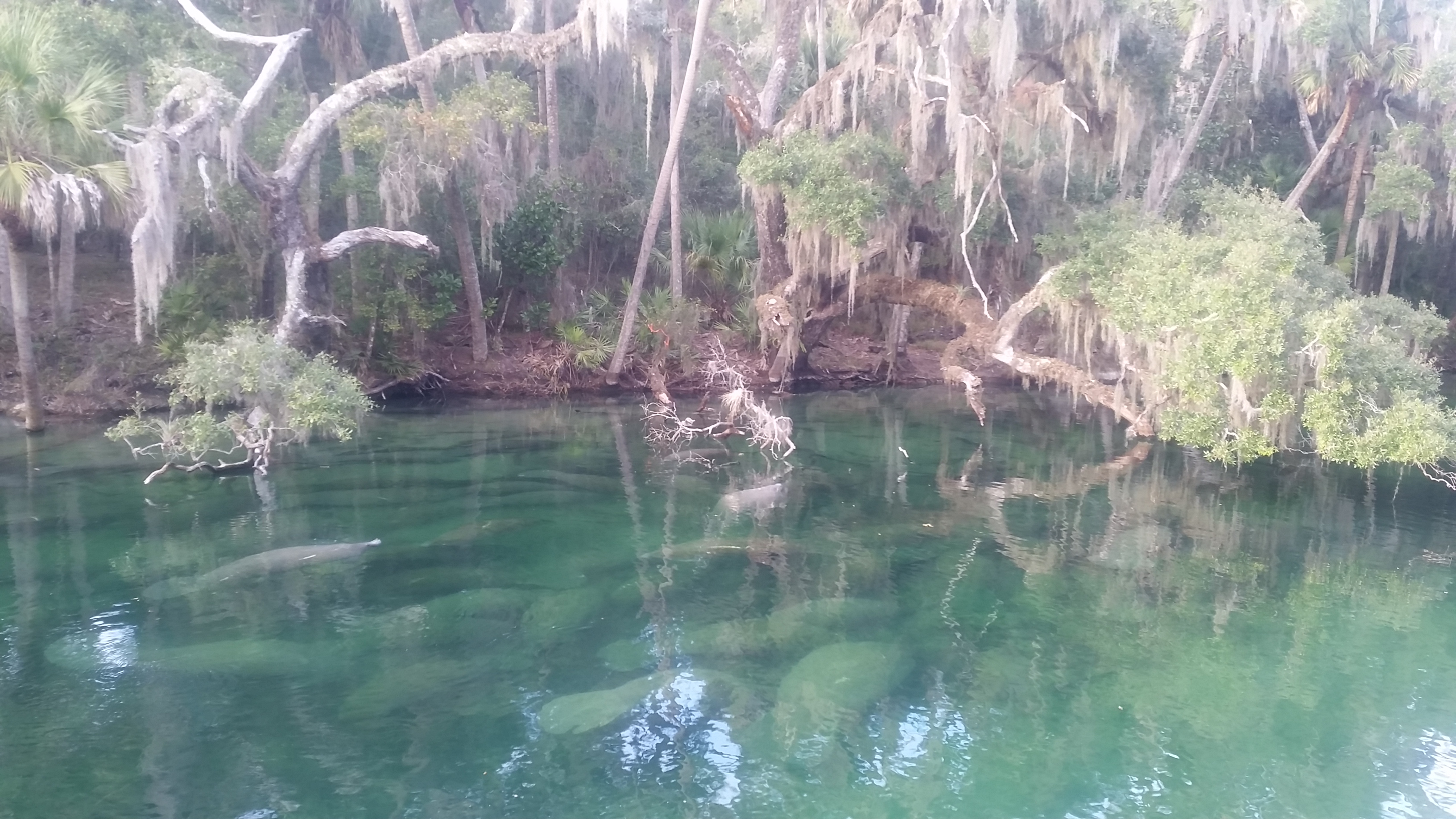 Soon it was back to the canoe, and back to Wekiva Island. Not too quickly though, as the return paddle was just as beautiful in reverse. Our next stop was Blue Springs, where I again saw things I did not know existed. On the day of our visit, over 300 manatees were also visiting the park. I am not sure I had ever seen a manatee before, much less had any idea they congregated in such numbers, and in fresh water at that. If my memory of the signs serves me right, manatees have trouble tolerating weather below 68 degrees. Because of that, they move inland during the cold of winter – and at least in Michigan we know the past couple winters have been cold! The springs put out millions and millions of fresh clean water every day at a constant 72 degrees. The manatees have discovered this and have made Blue Springs and other similar springs their winter vacations destinations of choice.