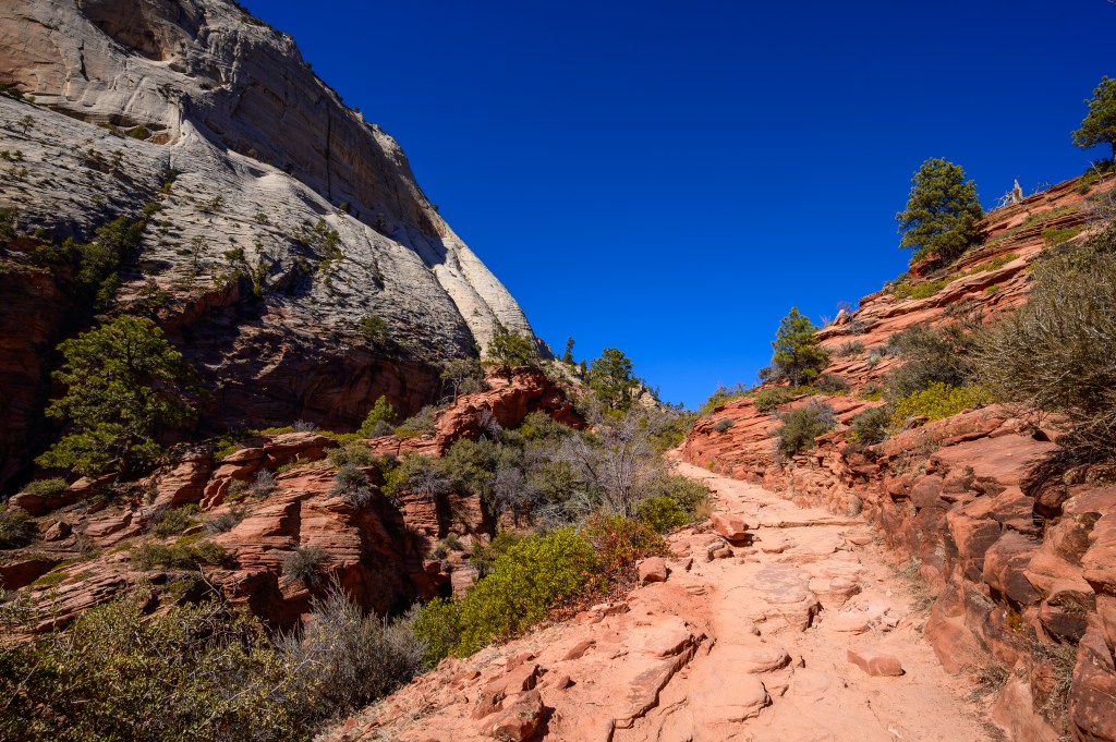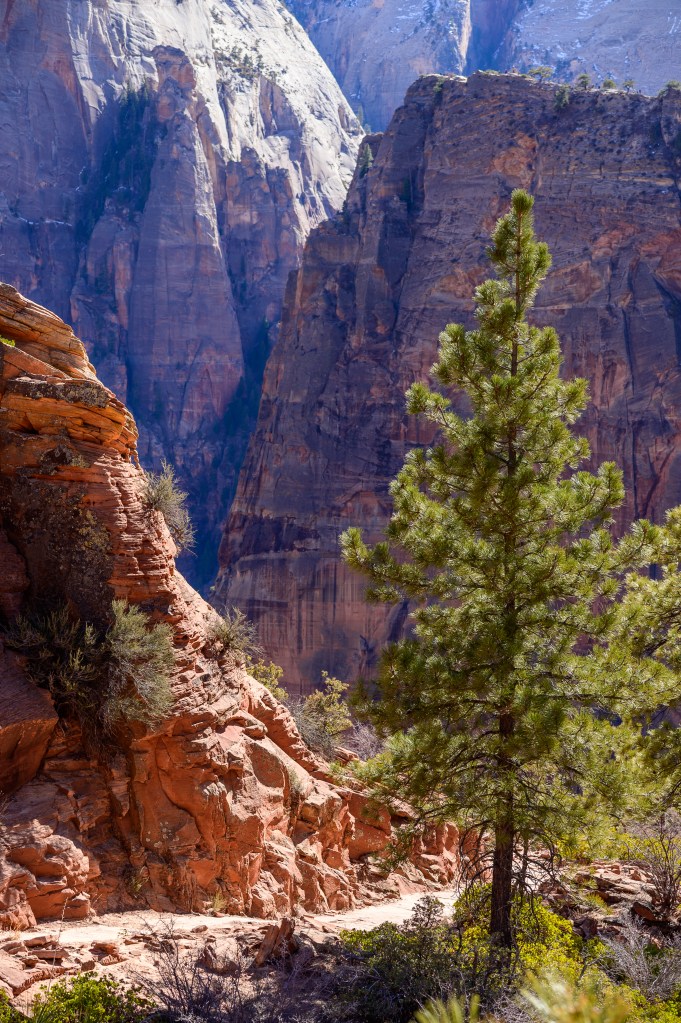 My morning hike today found me on the Emerald Pools Trail across from the Zion Lodge. It was winter, and so there were not really any emerald pools, but it was a rigorous morning hike with some nice views.